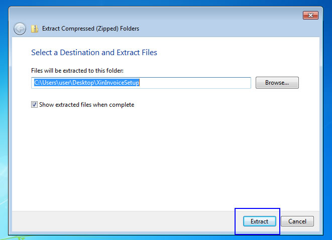 - Right click on XinInvoiceSetup.zip and click on Extract All... the file
